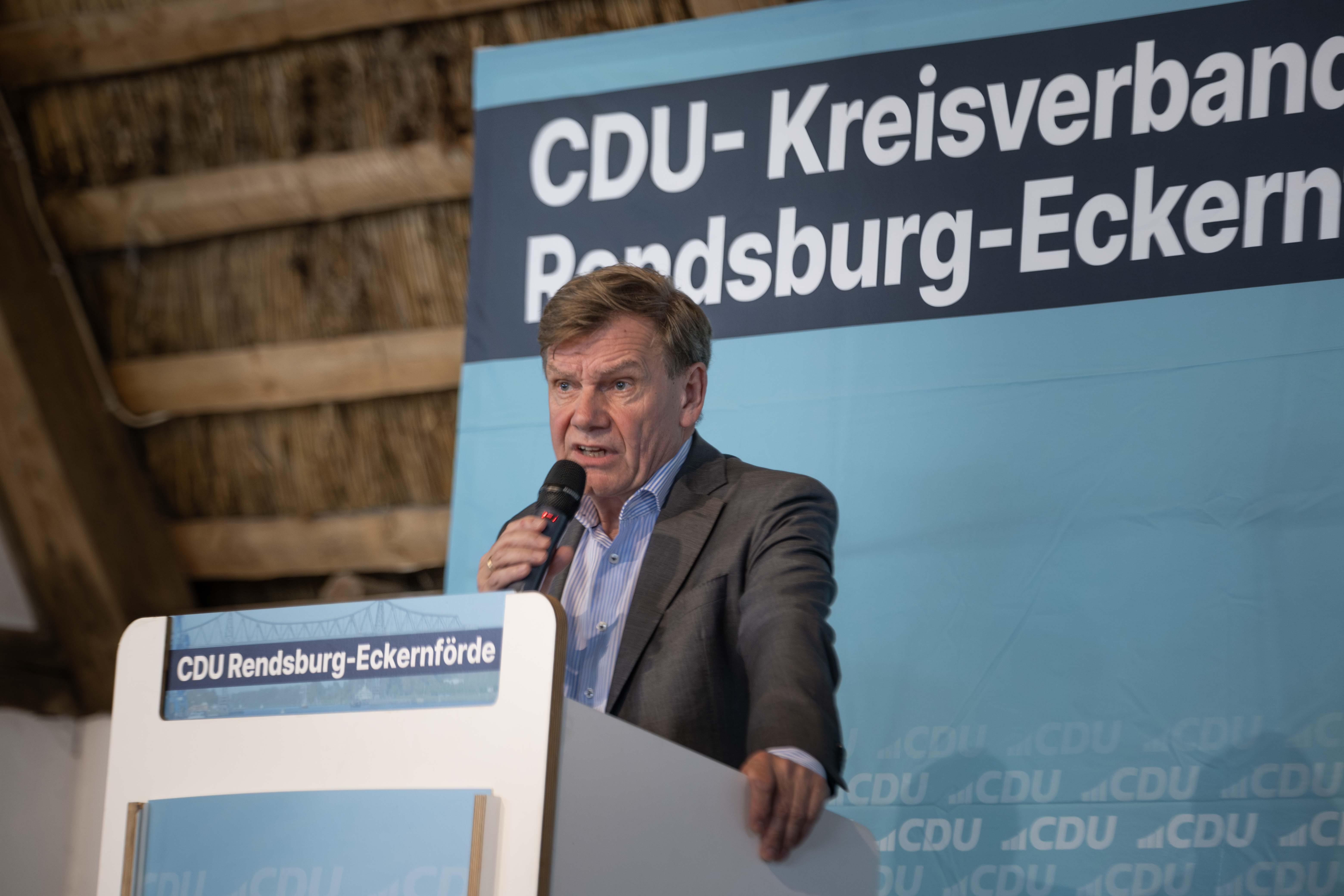Als ehemaliger Landesvorsitzender der Jungen Union Schleswig-Holstein ist dem Rechtsanwalt aus Molfsee aber auch das Thema Generationengerechtigkeit ein großes Anliegen. „Ich bin der festen Überzeugung, dass wir die Schuldenbremse nicht in Frage stellen dürfen, wie die SPD es tut!“, macht Wadephul unter Beifall deutlich und ergänzt, „Wir sind es der jungen Generation schuldig, ihnen einen Haushalt zu überlassen, der auch Investitionen möglich macht und nicht durch hohe Schulden- und Zinsbelastungen keine Spielräume mehr zulässt.“