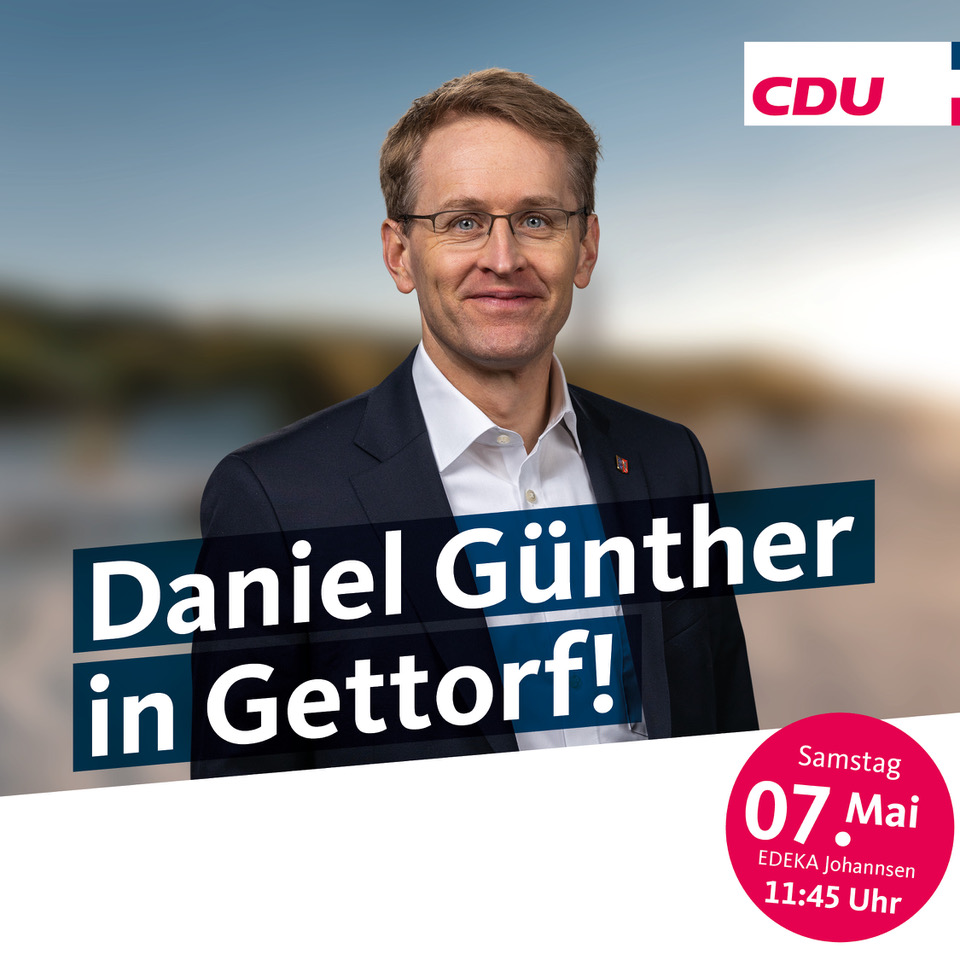 Kommen Sie ab 11.45 Uhr am Edeka Johannsen in Gettorf mit Daniel Günther ins Gespräch! Termin 07.05.2022 11:45 zum iCalendar hinzufügen zum Google-Kalender hinzufügen Empfehlen Sie uns!Bei Facebook teilen Bei Twitter (X) teilen Bei Whatsapp teilen Diese Seite drucken Diese Seite einem Freund schicken